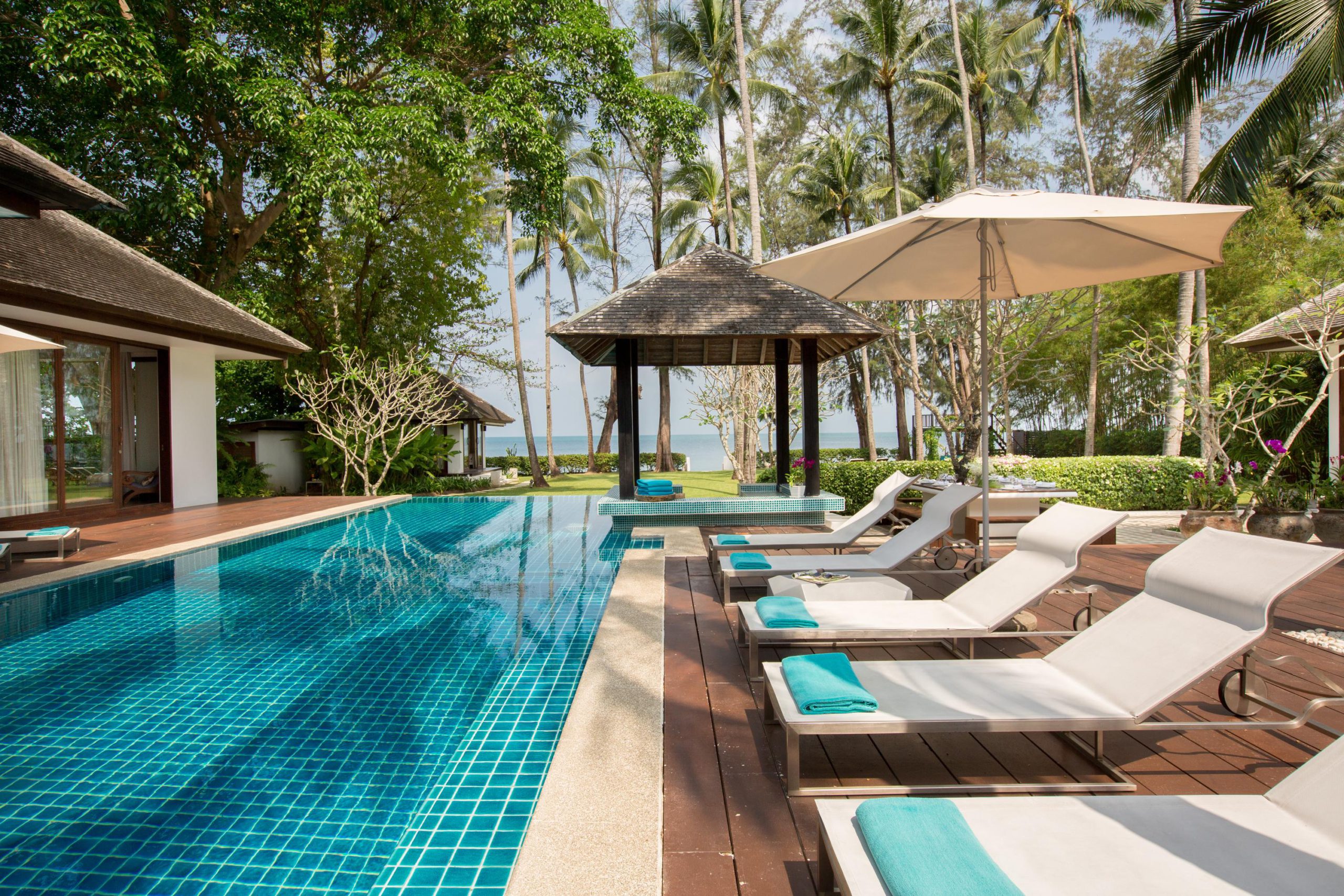 Elegant beachfront living inspired by modern Japanese and Thai design. Families enjoy tiered pools that cascade toward the sea, generous indoor-outdoor living zones, and a private beachfront ideal for supervised water play. Dedicated spa rooms and peaceful gardens allow parents to unwind while staff prepare child-friendly menus or arrange gentle activities.