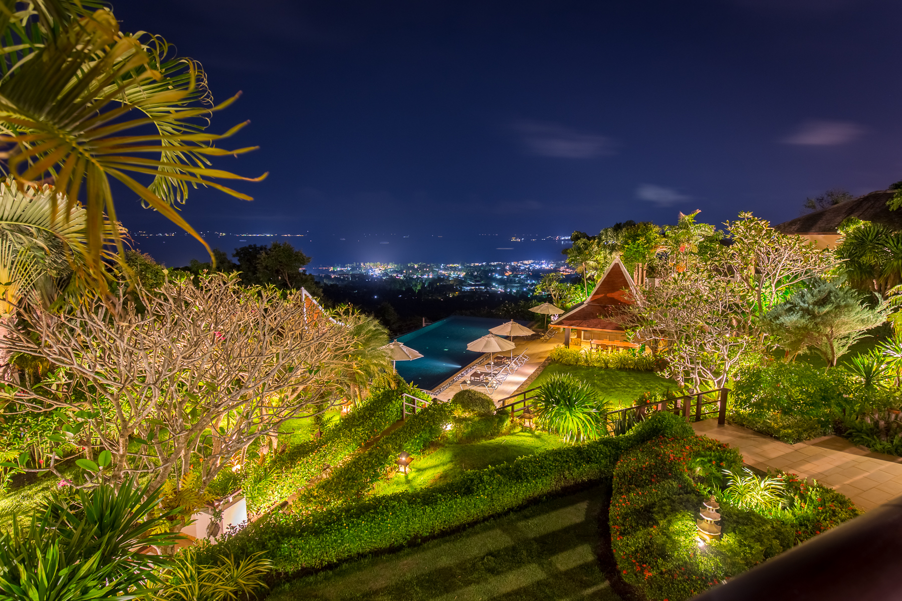 As afternoon fades, Koh Samui’s west coast delivers a stunning sight. Baan View Talay, The Headland Villas, and The View Samui offer elevated, west-facing positions and front-row seats to sunsets painted in peach, gold, and rose.